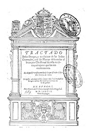 | Cover from 1578 spanish edition of "Tractado de las drogas y medicinas de las Indias Orientales", by Cristóbal Acosta. |